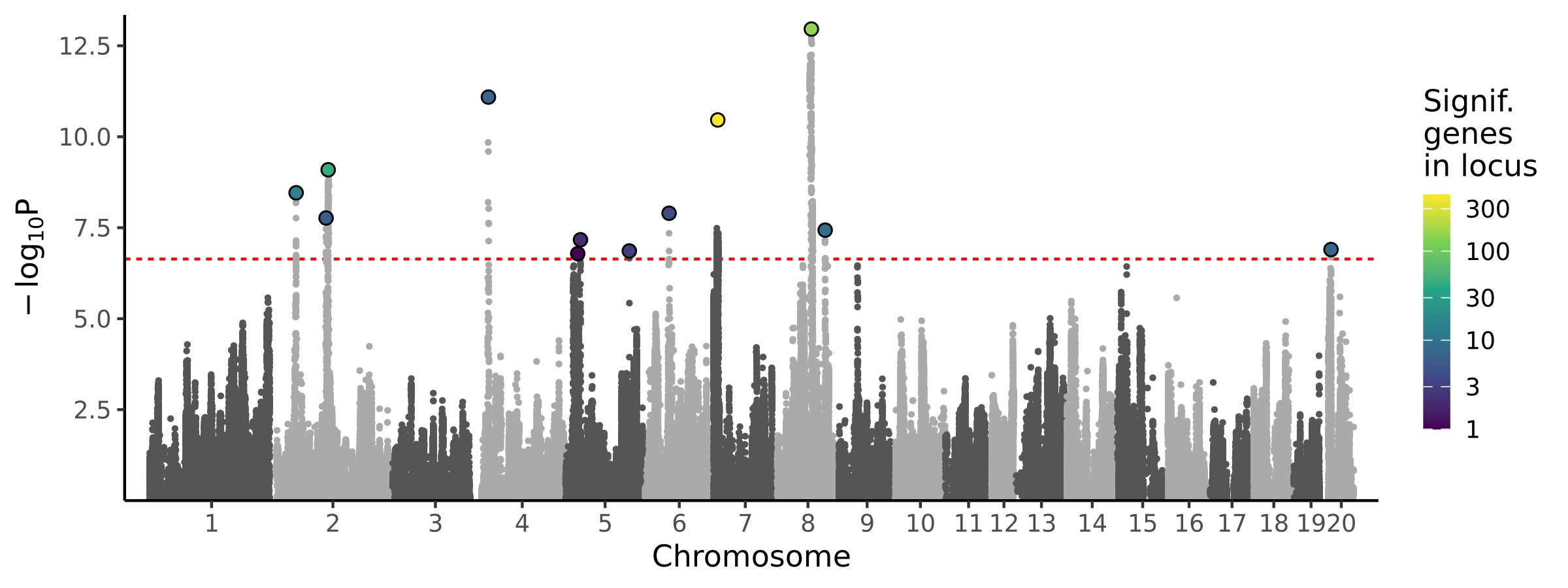 | 12 | chr20 | 5086090 | 6587967 | 8 | 1 | 1.26e-07 | 6.79e-08 | 1.05e-01 | Snrpc |